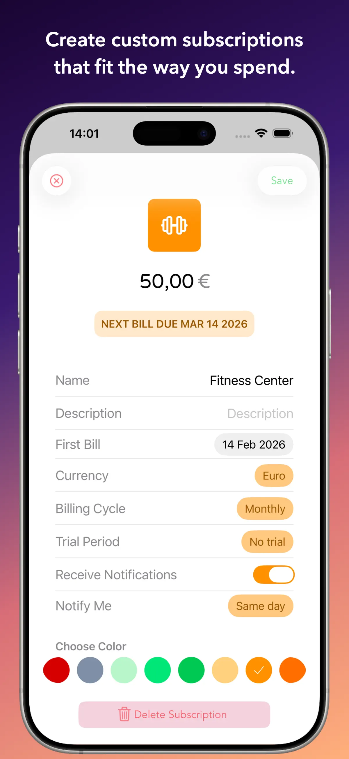 • Add from 150+ popular services or create your own custom subscriptions